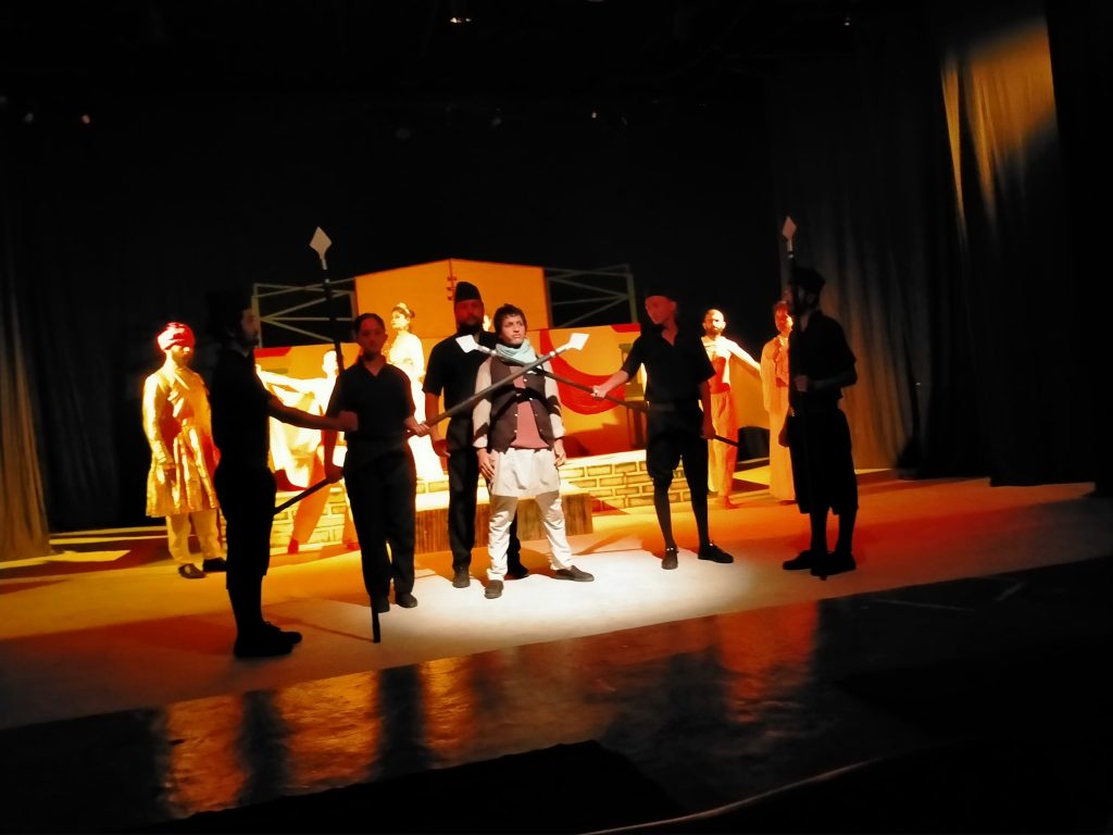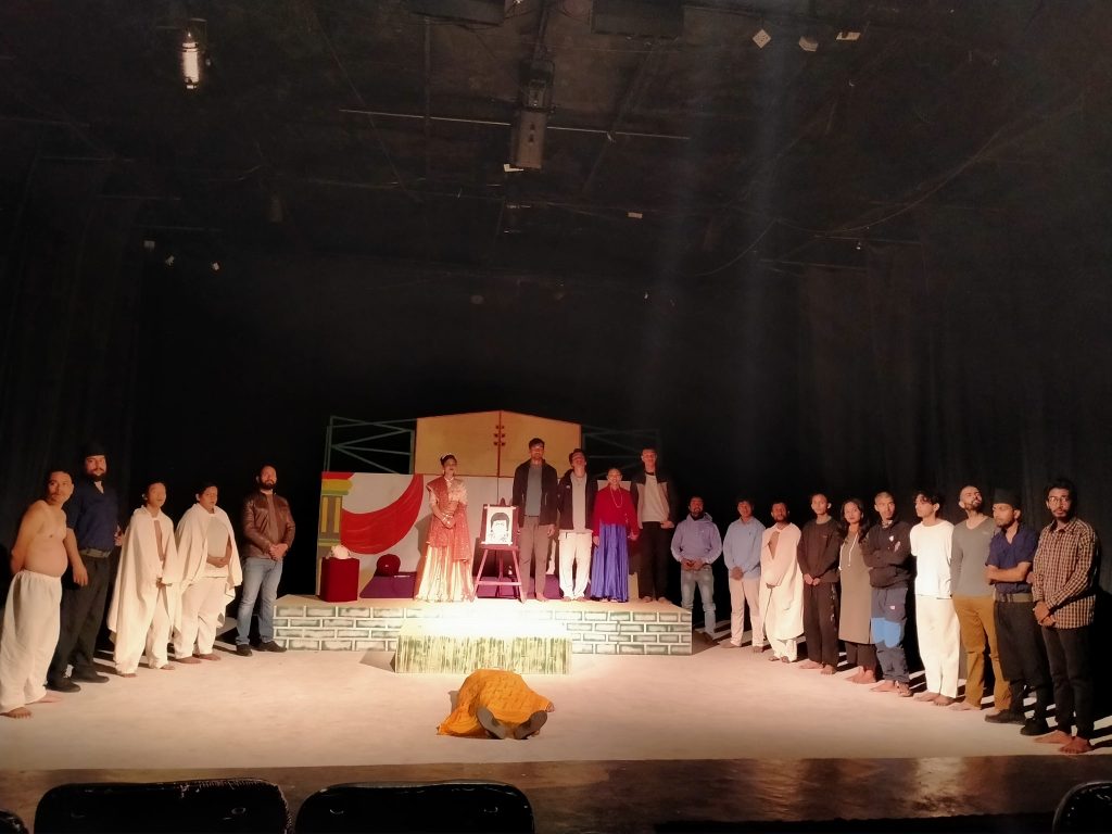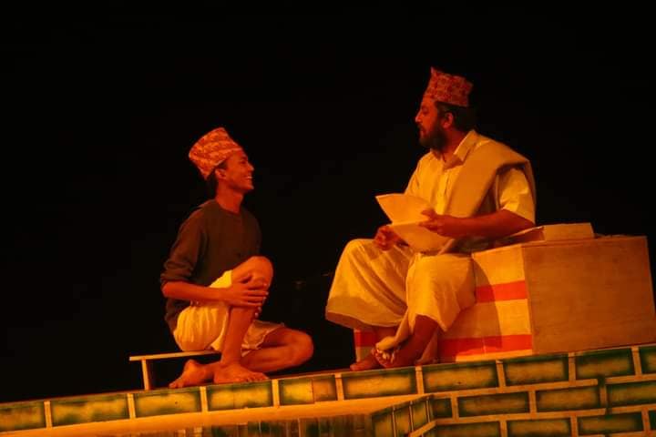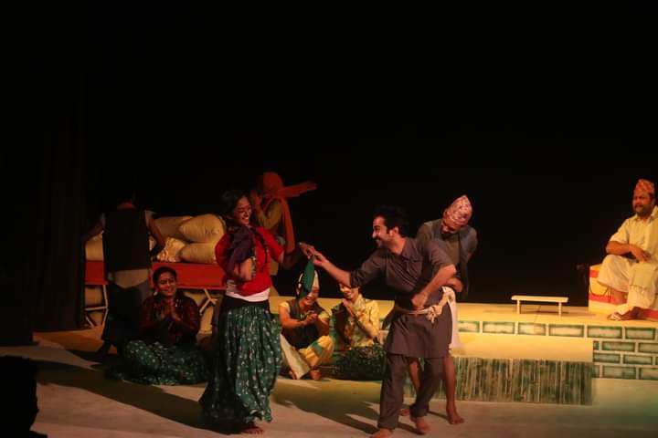 यस नाटकलाई नवलपरासीका रङ्गकर्मी आशान्त शर्माले पश्चिम नेपालको परिवेश र लबजमा ढालेर नेपाली अनुवाद गर्नु भएको छ । पोखरामा मञ्चन भएको नाटकको निर्देशन भने युवा रङ्गकर्मी निश्चल विमलले गर्नु भएको हो । नाटकमा शरद भण्डारी, धुर्ब राज पौडेल, निश्चल बिमल (पुनःमञ्चनमा), सरोज तिवारी, रोशनी रामदाम, सुमन तिमिल्सिना, विष्णु तिमिल्सिना (पुनःमञ्चनमा), उज्वलराज ढकाल, गौरव पौडेल, रमेशबाबु तिमल्सिना, मनोज सुनार, एम.डी काफ्ले, नौर क्षेत्री, सुशील बराल, अदित भुजेल, विवेक मन, एलिसा वि.क, सुविना श्रेष्ठ, रोशनी श्रेष्ठ, सर्जम मगर, प्रतिक राउत,कृष्ण सुबेदी (पुनःमञ्चनमा) लगायतका कलाकारहरूको अभिनय रहेको छ । लाईभ संगितमा रोम तामाङ् र मिलन गीरीले साथ दिनु भएको थियो भने नेपथ्यबाट अग्रज रंगकर्मी प्रमिला तुलाचन, परिवर्तन, अन्जु दाहाल, ,प्रेम केशी, बेद जोशी, समिर क्षेत्री, ललिता तिवारी, राधा बश्याल लगाएतको सहयोग रहेको थियो ।