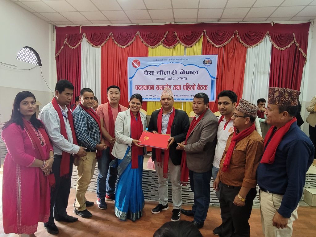 पत्रकारहरुको संस्था प्रेस चौतारीले हालै सम्मन्न गरेको गण्डकी प्रदेश कमिटी पदाधिकारीहरुको पदस्थापन शुक्रबार गरेको छ । उक्त पदस्थापन कार्यक्रममा प्रेस चौतारीका केन्द्रिय अध्यक्ष गणेश बस्नेत को उपस्थिती थियो । गण्डकी प्रदेशका बिभिन्न जिल्ला प्रतिनिधी लगायत नव निर्वाचित प्रदेश कमिटीका सदस्यहरुलाई शुभकामना तथा असल पत्रकारिताबारे जानाकारी दिने उदेश्यले सो कार्यक्रम आयोजना गरिएको थियो । केही दिन महिला भएको प्रेस चौतारीको प्रदेश स्तरिय अधिवेशनबाट निर्वाचित भइ आएका प्रदेश कमिटी अध्यक्ष इन्द्र पौडेलको लगायतको टिमलाई माइनेट बुक हस्तान्तरण तथा शुभ सञ्चार गरिएको थियो ।