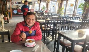 अव आज कै कुरा गरौ म क्याफे छिर्दा २ टेबुलमा जोडीहरु थिए महिला महिला अर्थात दिदी बैनी वा केही होलान । बाकी सवै टेवल खाली थिए । टिभीमा फुटबल गेम चलिरहेको थियो भने मन्द धुनमा रेलको ढोका बन्द, नसम्झे मायाले सम्झे रुन्छ मन भन्ने प्रिय लोक गित बजिरहेको थियो । त्यही गितको पहिलो बोलमा महिला स्वरमा भनिएको थियो गयौ तिमी छोडेर लाहुर, मै बसुला काटेर घास दाउरा, रेलको ढोका बन्द । ठिक त्यस्तै यो शहरका धेरै युवायुवती बिदेश पसे बाकी त केही कर्मचारी, ब्यापारी र बृद्धबृद्धा अनी म जस्तै बेरोजगारी मात्र छन जस्को त्यो आल्मण्ड क्याफेको मम सधै खाजा खान सक्ने समय र सहजता छैन । मेरो खाजा अडर लिन आउने भाईलाई सोधे यो खाजा खाने समयमा किन यती रित्तो भएको ,उनले स्वभाविक ढंगले जवाफ दिए कोभिड पछी मान्छे खान आउनै डराए कोभिड गयो मान्छे पनि बिदेश गए । यो शहरमा हाम्रो तीन तलामाथीको रेस्टुरामा उक्लेर खाजा खाने मान्छे नै छैन तल सडकको ठेलाले पनि ब्यापार सुकाएको छ । भाईको कुरा सुनेर कता कता चिस्स छोयो । उता मधुर धुनमा रेलको ढोका बन्द घन्किरहयो मेरो मम पनि आयो, मेरो दिमागमा नेपालका युवाको बिदेश पलायन फिल्म नाच्यो, मनमनै म त्यसै मर्माहित बने । किनकी म पनि १३ वर्षको बिदेश बसाईले वाक्क भएर ढुक्कले बाच्न आएको अहिले दिक्क भएर बुरुक्क उफ्रेर लुसुक्क फेरी बिदेश पसौ कि जस्तो भैसकेको छु ।
