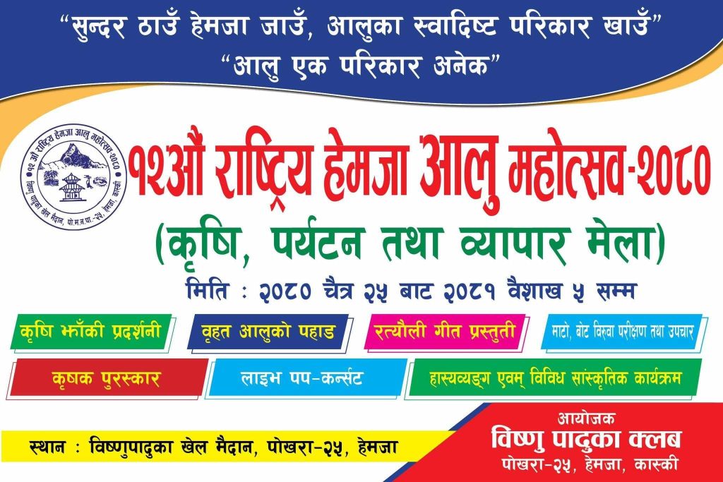 यहि चैत २५ गतेदेखि बैशाख ५ गतेसम्म हुने १२ औं संस्करणको राष्ट्रिय हेमजा आलु महोत्सवको तयारी तीब्र पारिएको छ ।
