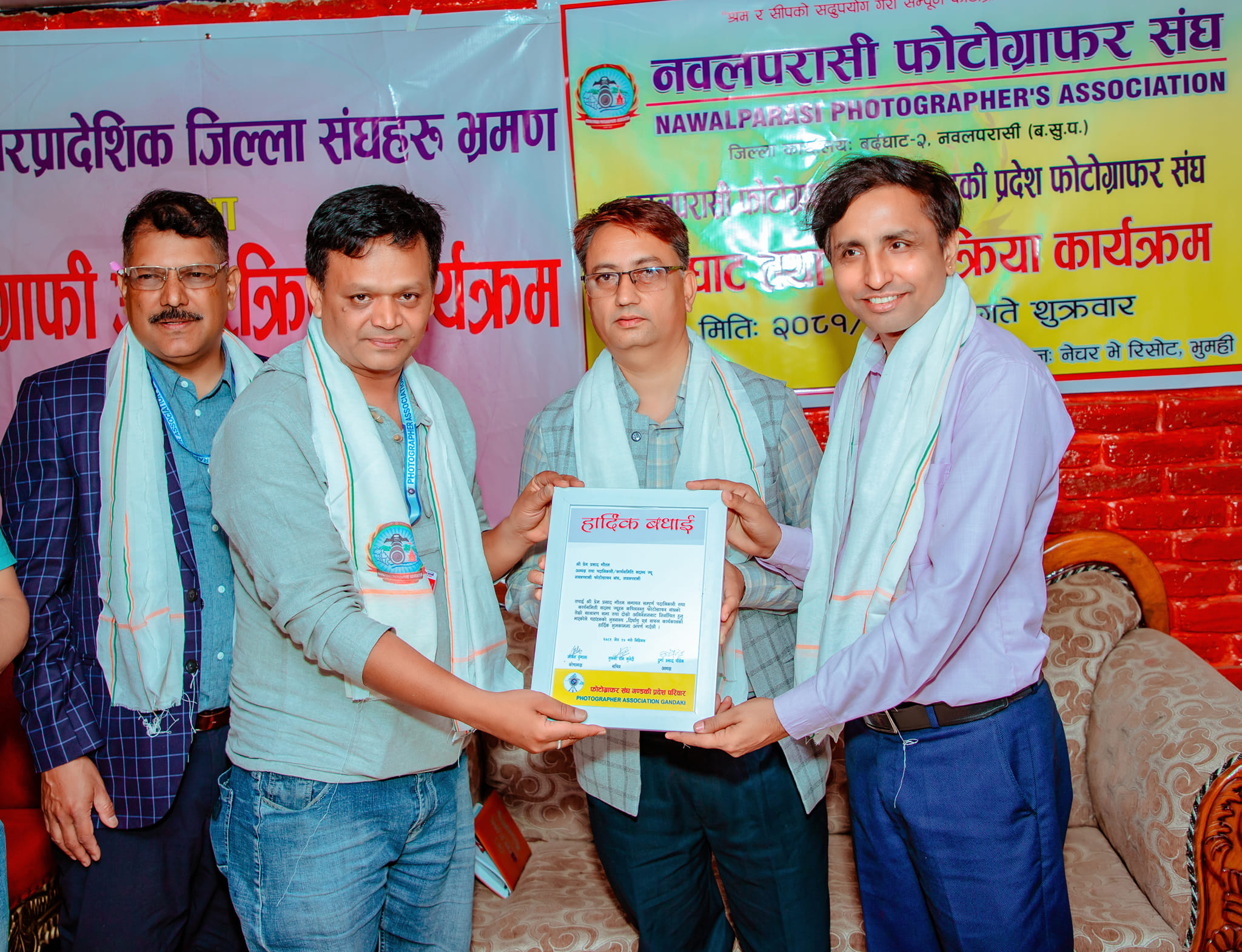 अन्तरप्रादेशिक फोटोग्राफी अन्तरक्रिया कार्यक्रम अन्र्तगत लुम्विनि पुगेको टोलीले आयोजना गरेको कार्यक्रममा लुम्विनि फोटोग्राफर संघका निवर्तमान अध्यक्ष मनिष पन्थ,कपिलबस्तु फोटोग्राफर संघका रामचन्द्र बेलवासे,पोखरा फोटोग्राफर संघका रामचन्द्र पोख्रेल, पर्वत फोटोग्राफर संघका नारायण के सी तनहुं फोटोग्राफर संघका नि अध्यक्ष बलभद्र श्रेष्ठ, फोटोग्राफर संघ गण्डकीका शिक्ष तथा तालिम सदस्य जनक तिवारी, फोटोग्राफर संघ गण्डकीका शिक्ष तथा तालिम संयोजक घनश्याम पौडेल, फोटोग्राफर संघ गण्डकीका सचिव तुलसीराम सुवेदी, फोटोग्राफर संघ गण्डकीका कोषाध्यक्ष जिवन ढुंगाना , लुम्विनि फोटोग्राफर संघका रामु भण्डारी, लुम्विनि फोटोग्राफर संघका माधव प्रसाद पन्थ साथै फोटोग्राफर संघ गण्डकीका अध्यक्ष दुर्गा प्रसाद पौडेल लगाएतले एक कार्यक्रमका विच बिमोचन गरेका थिए ।