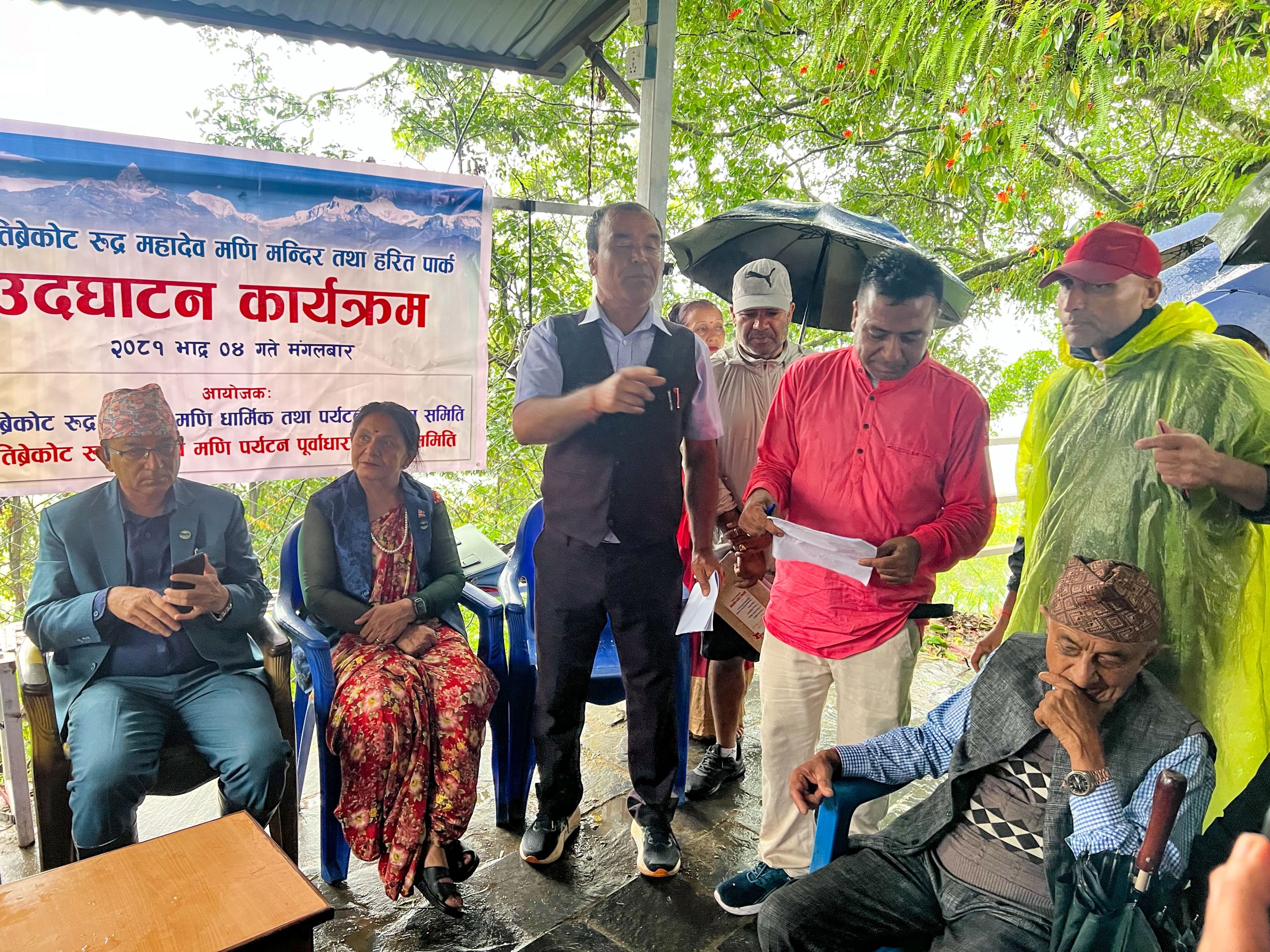 पर्यटनको राजधानी पोखरा–२५, हेमजा स्थित धार्मिक पर्यटनको नयाँ गन्तब्यको रुपमा तिब्रेकोट रुद्रमहादेव मणि मन्दिर तथा हरित पार्कको मंगलबार उद्घाटन गरिएको छ ।
