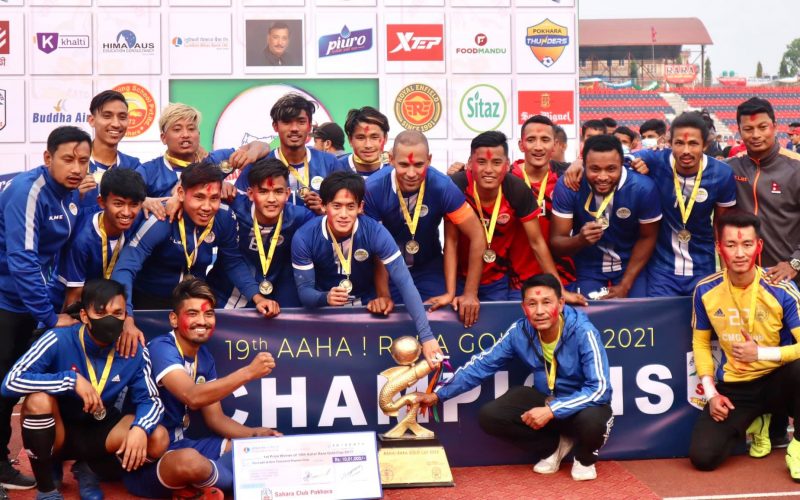 पोखरा रंगशालामा भएको १९ औं संस्करणको आहा रारा गोल्डकपमा अफ्रिकन रुट एसोसियसनलाई पेनाल्टी सुटआउटमा ४-२ गोल अन्तरले पराजित गर्दै संकटाले पहिलोपटक आहा रारा गोल्डकपको उपाधि जित्न सफल बनेको हो ।