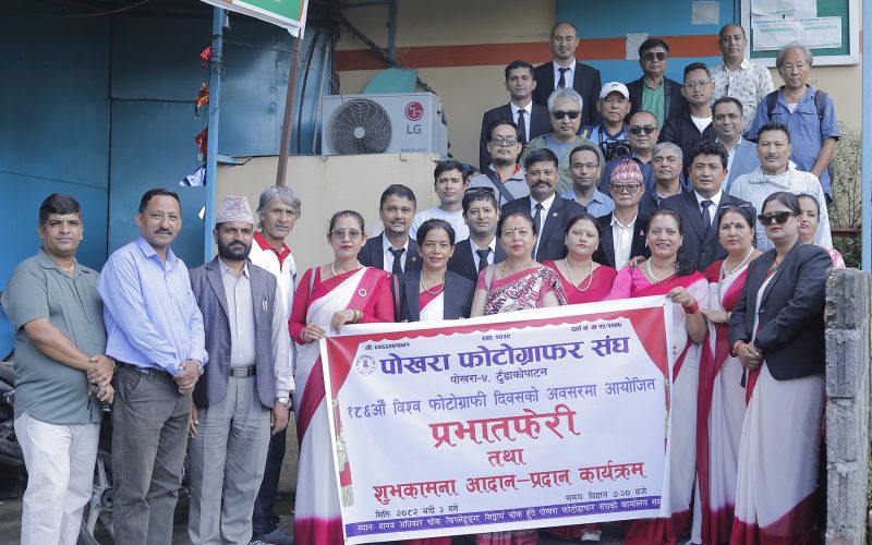 ३ भाद्र, पोखरा पोखरा फोटोग्राफर संघ ले बिभिन्न कार्यक्रम गरि बिश्व फोटोग्राफी दिवस मनाएको छ । १८६ औं बिश्व फोटोग्राफी दिवसको अवसर पारेर आयोजना गरिएको कार्यक्रम पोखराको मानवअधिकार चोक देखी सुरुभई चिप्लेढुंगा हुंदै पोखरा वडा नं ४ टुंडाको पाटनमा रहेको संघको कार्यालयमा पुगी सम्पन्न भएको थियो । कार्यक्रमका प्रमुख अतिथि संस्थापक सदस्य धन सुब्बा रहेका थप समाचार