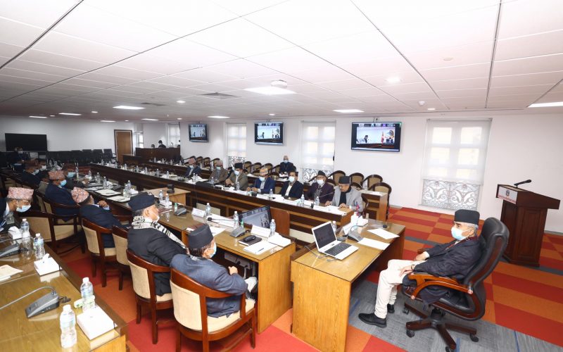 काठमाडौं,२१ पुष । मन्त्रिपरिषद्को बैठक सिंहदरबारमा सुरु भएको छ । विभिन्न विषयमा निर्णय गर्न बैठक बसेको हो । एक मन्त्रीकाअनुसार आजको बैठकमा प्रधानमन्त्री शेरबहादुर देउवाको भारत भ्रमण, विभिन्न मन्त्रालयको प्रस्ताव तथा आसन्न राष्ट्रिय सभा निर्वाचन एजेण्डा रहेको छ । भारतको गुजरातमा हुने ‘भाइब्रेन्ट गुजरात’ सम्मेलनमा सहभागिताका लागि प्रधानमन्त्री देउवालाई भारतका निम्तो आएको छ । २६
