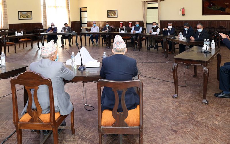 काठमाडौं,१५ भदौ । प्रधानमन्त्री निवास बालुवाटारमा सत्तारूढ गठबन्धनका शीर्ष नेताहरुको छलफल भईरहेको छ। नेताहरुबीच मन्त्रिपरिषद्को पूर्णता र मन्त्रालय भागबन्डालगायत विषयमा छलफल केन्द्रीत भइरहेको छ। छलफलमा प्रधानमन्त्री शेरबहादुर देउवा, माओवादी केन्द्रका अध्यक्ष पुष्पकमल दाहाल प्रचण्ड, नेकपा एकीकृत समाजवादीका अध्यक्ष माधवकुमार नेपाल र जनता समाजवादीका डा। बाबुराम भट्टराई सहभागी छन्।