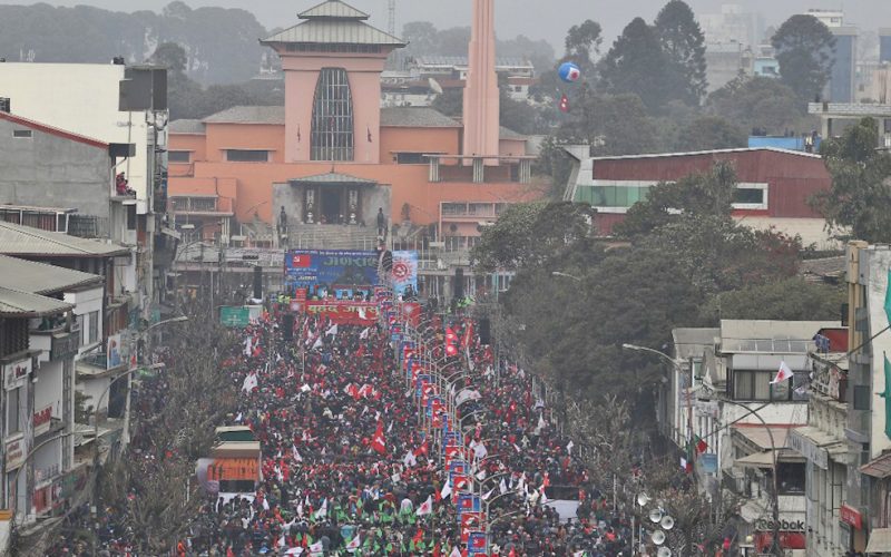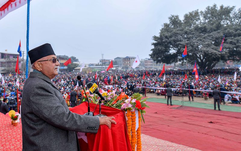 काठमाडौं,२३ माघ । नेकपा ओली समूहले काठमाडौंमा शक्ति प्रदर्शन गरेको छ । प्रतिनिधिसभा विघटनसँगै विभाजित नेकपाको ओली समूहले काठमाडौं उपत्यकामा शक्ति प्रदर्शन गरेको हो । अहिले नारायणहिटी दरबार संग्राहलय अगाडि आमसभा चलिरहेको छ, जसलाई प्रधानमन्त्री एवं ओली समूहका अध्यक्ष केपी शर्मा ओली लगायतका नेताहरुले सम्बोधन गर्दैछन् ।