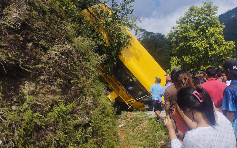 पोखरामा स्कुल बस दुर्घटना, घाइते विद्यार्थीहरुको उद्धार हुँदै
