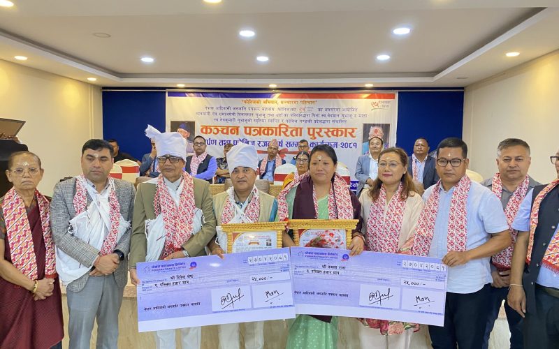 पत्रकार दीपेन्द्र श्रेष्ठ र कमला रानामगर कञ्चन पत्रकारिता पुरस्कार–२०८१ बाट पुरस्कृत २८ साउन,पोखरा नेपाल आदिवासी जनजाति पत्रकार महासंघ फोनिज गण्डकीद्वारा सञ्चालित ‘कञ्चन पत्रकारिता पुरस्कार–२०८१ वाट दीपेन्द्र श्रेष्ठ र कमला रानामगर पुरस्कृत भएका छन् । पत्रकारद्वयलाई गण्डकी प्रदेश प्रमुख डिल्लीराज भट्ट तथा पुरस्कारदाता सफल व्यवसायी विमलमान गुभाजु तथा गुभाजु परिवारले फेटा, दोसल्ला, सम्मानपत्रसहित नगद रु २५ थप समाचार