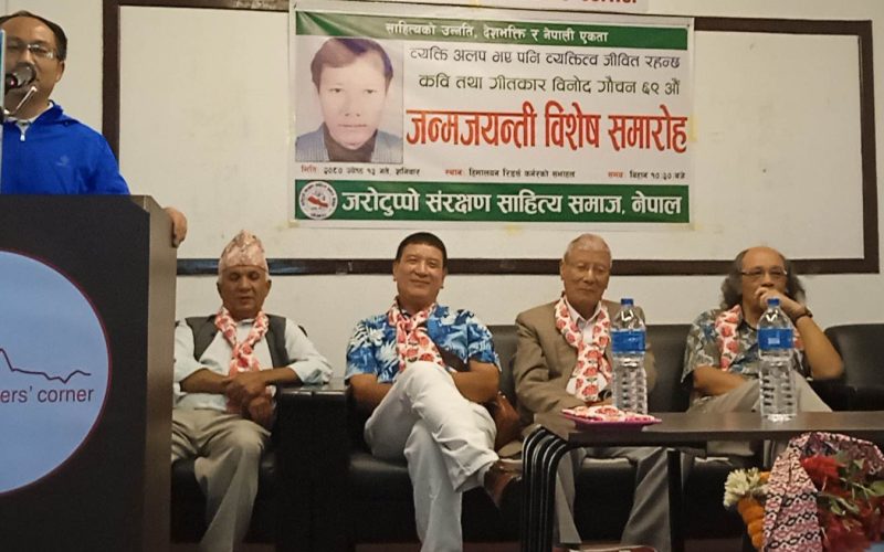 जरोटुप्पो संरक्षण साहित्य समाज नेपालले कवि तथा गीतकार विनोद गौचनको ६९ औं जन्मजयन्ती विविध कार्यक्रमका साथ मनाएको छ । कार्यक्रमका वक्ताले कविता गाउँका प्रणेता, तगारोमा रुमाल राखी।।।, जति माया लाएपनि।।।, ढुङ्गेसाँघुको मेलामा।।।, पोखरामा फूल फुल्दैनन्।।। लगायतका चर्चित गीतकार तथा कवि व्यक्तित्वका विविध अध्याय र आयामबारे आफ्ना धारणा राखेर गौचनको योगदान स्मरण गरेका हुन् ।